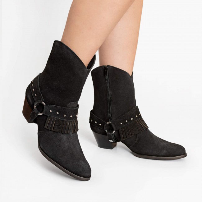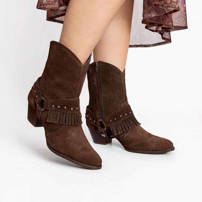 Uma peça icônica, estilosa e cheia de personalidade! Essa bota western de couro camurça tem o poder de transformar qualquer look. Com cano curto, salto bloco e um detalhe especial: franja removível — duas botas em uma: use com ou sem o enfeite, dependendo do mood do dia! A cor café é neutra e sofisticada! E mais: zíper na lateral para facilitar o calce, sola antiderrapante, salto forrado com fachete de couro e interior forrado com espuma pra aquele conforto que dura o dia todo. Dica de look: combine com vestido floral e jaqueta jeans para um visual boho chic irresistível. Ou aposte em jeans skinny + camisa branca oversized para um look western urbano com atitude.
