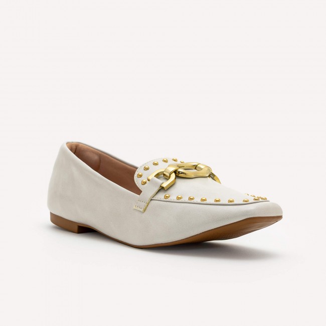 Mocassim Off White com rebites dourados: moderno e sofisticado, ele valoriza qualquer produção com um toque elegante e atual. O detalhe da corrente com rebites traz charme e personalidade, enquanto o tom neutro permite combinações versáteis, do look casual ao office look. Além de bonito, oferece conforto para o dia a dia. Ideal para quem busca estilo e praticidade. Garanta o seu.