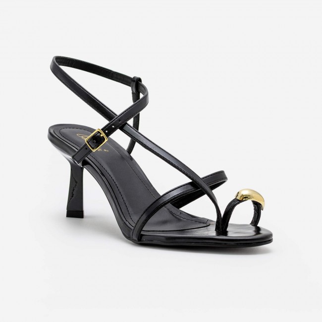 A sandália moderna com dedão e esfera dourada preto é a escolha certa para quem busca elegância com atitude. O design minimalista das tiras finas contrasta com o detalhe marcante em metal dourado no dedão, criando um visual sofisticado e atual. O salto taça médio garante conforto e estabilidade sem abrir mão da feminilidade, tornando o modelo perfeito para compor produções noturnas, eventos ou elevar o look do dia a dia com estilo refinado.