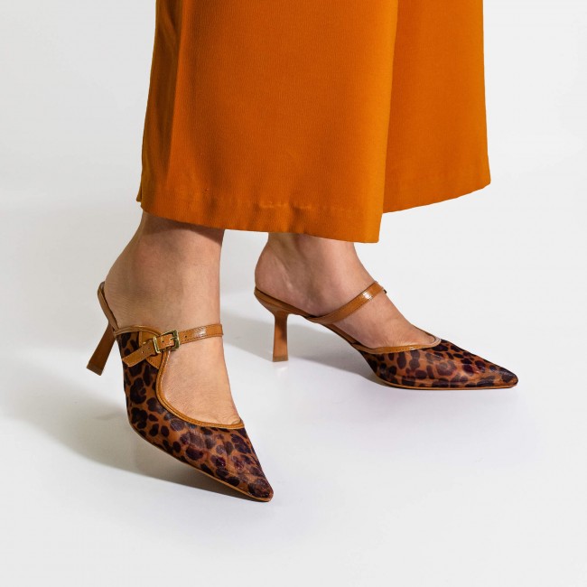 Essa mule é poderosa por natureza. A tela com estampa de onça traduz atitude, enquanto o bico fino traz um toque de elegância instantânea. O salto geométrico adiciona modernidade, equilibrando estilo e conforto na medida certa. A tira com fivela ajustável no peito do pé garante um ajuste perfeito, deixando o calce ainda mais seguro. Impossível passar despercebida! Essa mule transforma qualquer look com um toque fashion e marcante.
