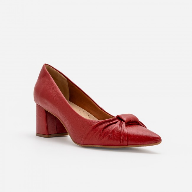 Um toque de cor que transforma qualquer produção. Esse scarpin vermelho em couro tem presença marcante, sem perder a elegância. O laço torcido no cabedal adiciona feminilidade e charme, enquanto o salto bloco entrega conforto para quem não para ao longo do dia. Do look neutro ao mais ousado, ele entra como protagonista e levanta o visual com estilo e segurança. Ideal para quem ama sapatos que fazem a diferença.