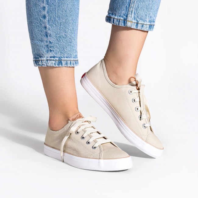 Sabe aquele tênis que não tem erro? Confortável, levinho, feito em lona, com aquele design básico, delicado e atemporal que vai com tudo. Do jeans ao vestido, do look de trabalho ao passeio do fim de semana. É aquele tipo de peça descomplicada que resolve qualquer produção com muito estilo — e claro, com aquele toque cool que só a Coca-Cola entrega.
